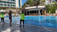 МОРЕ, ПЛЯЖ – До пляжа возит тук-тук. Иногда прямо до пляжа, но чаще до мостика, откуда идти 1 - 1,5 минуты. Многие ходили пешком. Идти минут 5-6. Я ходила 1 раз, а потом было лень и всегда ездила. Море замечательное. Для детей самое то. Плавный песчаный заход. Камней нет совсем. Если только тщательно искать). Пляж достаточно чистый. Хорошие лежаки. Пластиковый каркас и мягкая сетка, там где лежишь. Себе на дачу приобрету такие же. Очень понравились. Бар хороший. Можно покушать и не ходить на обед в отель. Тётенька печёт лепёшки гёзлеме. С 15:00 мороженое в упаковке. Туалеты, души – всё работало. Там же можно купить водные развлечения. Под конец сезона были хорошие скидки.