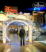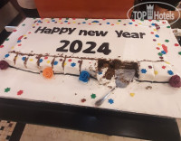 И вот наступило 31 декабря! Как же всё-таки хорошо провести этот день на море! Вся тер-рия отеля по-новогоднему украшена - ресепшн, ресторан, у бассейна надуты шары и стоят столы для вечернего праздника. После дневного купания в море и бассейне, мы пошли в номер собираться на праздник. На ужин все пришли красивые, нарядные, а в холле всех ждали коктейли, выступали артисты. Супер-фотограф делал отличные кадры (я недорого потом купила несколько фото). В ресторане нас ожидал прекрасный ужин - очень много вкусных, красивых закусок, сладостей, мясо, рыба, морепродукты. После ужина на ресепшн опять развлекали артисты. А позже, все пошли к бассейну за свои столы. Там, для всех лежали красивые колпачки, очки и стояли маленькие тарелки с закусками. Спиртное можно было брать в баре, через официанта или пить своё из дьютика. Сначала была лотерея, потом танцор с юбкой, концерт и наконец-то включили музыку и все стали танцевать. Мы радовались празднику и зажигали с итальянцами, англичанами и другими. В конце вынесли красивый новогодний торт, его мы съели 1 января в ресторане. Погуляли мы хорошо, но не хватало тех закусок с ресторана у нас на столе, как мы привыкли дома.