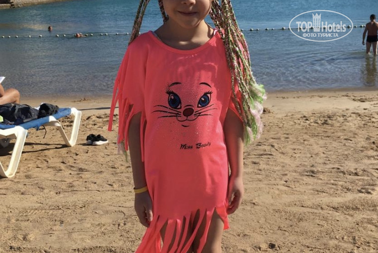 Пару дней дул сильный ветер, но расположен отель так, что здание с лева закрывает от ветра лагуну, где и загорали отдыхающие. Лежаки с утра уложены в стопки, возле них дежурный, который принесет сколько и куда скажете лежаков. У отеля очень удачное расположение. Лагуна между зданиями - плавный заход - песок. Играют детишки, строят башенки. Дальше заход с трапиков, где можно поплавать. В конце левого здания, где рыбный ресторан - шикарный риф. Дул ветер, висел красный флаг, но никого это не пугало. Подводное царство это что-то.. Как будто в сказку попадаешь. Разные рыбки и кораллы. Сидел охранник, но делал вид, что не замечал любителей поплавать с маской. Бассейн на территории отеля был с подогревом.