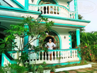 Отель выбирала по отзывам. Тихое место, то что нужно для спокойного отдыха. Встретил нас хозяин отеля Антонио на своей машине ( автобус до отеля не доезжает), так же он нас провожал ночью до трансфера. В отеле всего 6 номеров. На момент нашего приезда было занято только 2 номера, мы заняли номер 4 на втором этаже. Номер достаточно свободный. Большая кровать, шкаф ( не очень удобный, платья в нем не повесишь), пластиковый столик, 3 пластиковых кресла. Их можно на балкон поставить. Балкон, кстати, достаточно просторный, граничит с балконом соседнего номера. Точнее это единый балкон, разделенный горшками с цветами. У нас там была веревка, на которой можно было сушить купальники и полотенца) Рядом с кроватью стояла почему-то одна тумбочка, а с другой стороны просто пластиковый табурет, что было очень неудобно! С мебелью там не всё хорошо. Нам очень не хватало и второй тумбочки, чтобы разместить мелкие предметы, типа кремов, расчесок и т.п. Нет нормального стола, за который можно присесть, чтобы перекусить или попить кофе, чай. Маленький пластиковый столик в этом плане очень неудобен. За 300 рупий на весь срок в наше пользование был предоставлен маленький холодильничек, его вполне хватало. В санузле нет полок, поэтому все шампуни, бальзамы, гели и т.д. пришлось ставить на окно. Фена нет. Горячая вода была в любое время. Из гигиенических принадлежностей мыло в мыльнице и туалетная бумага в достаточном количестве) Полотенца были только банные ( 2 штуки), для лица и прочего я привозила свои. Ещё в номере имеется эл. чайник, 2 чашки для чая-кофе, 1 стакан, 1 чайная ложка и 1 тарелка) Наверное, можно что-то из посуды, при необходимости, попросить у Антонио, но мы бывалые туристы и посуду всегда возим с собой) У нас был тур с завтраками, но они в этом отеле чисто символические: тосты, джем, масло, чай, кофе, молоко. Омлет мы заказывали отдельно, он стоит 50 рупий 1 порция из 2-х яиц. Это дешевле, чем на пляже в шеке. Антонио показывал нам меню, можно было еще что-то заказать, но мы ограничились омлетом) Ужинали всегда в шеках на пляже.