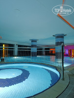 На улице бассейн без подогрева,в крытом вода комфортная, но хлорка невозможно режет глаза. Хамам , сауна бесплатно .
