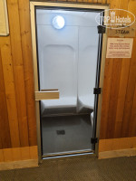 На первом этаже небольшой теплый бассейн, сауна, хамам, душевые кабины. На входе выдают полотенца.