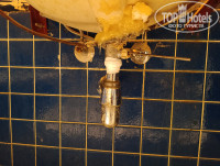 После еды начали смотреть детально номер - сантехника вся ржавая - держаться на фум-лентах и герметике сантехническом, по бортам ванны все в черной плесени, в раковине весь отдых стояла вода. Постельное белье застирано до катышков, есть проженные места от сигарет, следы помады на наволочках. Электрика за телефоном на скрутках.
