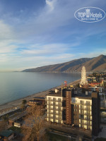 Большой отель с прекрасными видами и на море и на горы Находится прям на набережной, напротив в аквапарк, вокруг полно магазинов, кафе аптек и рынок в 5 минутах. На набережной есть аттракционы, работающие круглый год. Отдыхали в отеле 2 недели, номер стандарт и на 4 м этаже, с видом на стройку, хотели поменять, но сказали, что они не переселяют. Уже на 8 этаже хороший вид на море. Обязательно учитывайте что номер эконом очччень маленький, места свободного для передвижения просто нет, многие в шоке от увиденного номера, он как вариант, если переспать или одному, зато виды там все неудобства компенсируют. Планировка там с одной стороны стандарт, с другой эконом, из которых прекрасный вид.