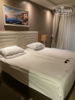 Море видно, но на грани) торчит из-за деревьев, но лежа на кровати в номере его видно в принципе, не придерешься. Хитро. Сам номер небольшой, видавший виды. Видно, что погрешности заделывают. Одна из лампочек в санузле не работала и там было тускловато. Это в принципе не мешало нам, потому мы не стали идти на ресепшн с этой проблемой. Отмечу, что другие вопросы (наши личные) ребята решали оперативно. Мини-бар пополнялся ежедневно. Если попасть на парня, который разносит напитки и вежливо его попросить, можно получить двойную порцию того, что нужно). Постельное белье чистое, полотенца всегда были в наличии. Из номера ничего не пропадало. Оставляли деньги на чай за уборку - не взяли… странно. Ну ладно) в целом номером мы были довольны.