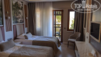 Из минусов - тесноватая территория, застроенная виллами, горками, амфитеатром. Одна дорожка к морю. Пляж галечный. Место для курения как раз под окном номера.