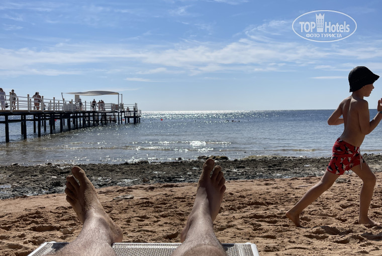 Пляж, находящийся на второй линии, поразил своими шикарным коралловым рифом и кристально чистой водой. На пляже новый пирс и лежаки, а так же обновленный бар и площадка для спортивных мероприятий. Каждый день аниматоры проводили на пляже зарядку, дартс, йогу. Ребята молодцы, очень позитивные.