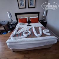 Прилет у нас был ранний, в 10 утра мы уже были в отеле. Нас сразу направили на завтрак, пока готовили номер. Заселили быстро. Мы брали категорию Комфорт. От стандартов они почти не отличаются размерами, но в наполнение включены халаты и посещение ресторана, а так как мы постоянные клиенты сети, то в ресторан ходили дважды. Номера небольшие, меньше чем в Антедоне, но места для троих взрослых было достаточно. Первый предложенный номер не понравился и нам его быстро поменяли на другой. По выбору номера могу порекомендовать брать номер в сторону отеля Sailor's и этаж повыше. У нас был номер 2514, тихий и чистый, днëм и ночью слышно шум моря. Если номер выходит на другую сторону, то может быть шумно днëм, потому что в Добедане идëт ремонт.