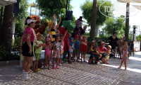 В этом году первый раз в Дельфине мы отдыхали с внучками 3 и 5 лет, и приходилось смотреть на отель немного другими глазами. Старшая внучка с удовольствием ходила в «морской садик» и принимала участие во всех детских мероприятиях. Вечером на дискотеке от нее не отставала младшая. В субботу проходил галла вечер и старшая внучка была в роли ангелочка. Надо отметить, что девочки аниматоры очень внимательно относятся к детям в клубе, и малышей можно оставлять без всяких переживаний.