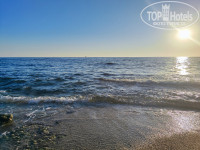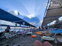 Пляж хороший, отличный заход, вправо есть камни (кто любит на крабиков посмотреть), а так немного гальки и песок. На пляже нет столиков, их шт 5 на весь пляж)) лежаков всегда хватает. Бар работает, попить, перекусить всегда есть где.