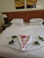 Итак, приехали мы в 7 утра в отель, браслеты нам не одели, сказали можем погулять, за браслетами подойти в 10.00... заселение в 14.00 и все бы ничего, но на завтрак мы не попадаем, а у нас трое маленьких детей 2г, 4г, 6л, которые уже хотят кушать, в самолете ведь не кормят. На просьбу хотя-бы покормить детей, нам сказали нет, но спасибо дали один сухой паек на троих 1 сок, 1 яблоко и 2 булочки. Пошли смотреть территорию, она от слова совсем не большая, основную площадь занимают бассейны, зелень только у номеров на первом этаже вдоль дорожек между ними и бассейнами, небольшая зеленая площадка где проходят детские развлечения, насажены ухоженные пальмы . Пляж красивый, много пальм, качели, детская площадка, зонтики с лежаками и оградой от ветра, все очень даже достойно. К 10 взяли браслеты, попили кофе с булочками, больше нам до обеда ничего не досталось. В 14.00 мы заселились в номер и тут нас ждало открытие, оказывается у отеля есть теневая сторона отеля, в которой совсем не бывает солнца, летом это конечно плюс, а вот зимой там просто холодно. Два следующих дня мы пытались решить вопрос с нашим номером, так как в нем оказалось не работают кондиционеры на тепло, в нем днем то было, как в холодильнике, ночью даже одеяло не спасало. Кондиционеры безуспешно чинили 2 дня и в итоге нас переселили на солнечную сторону в номер 2335, за что спасибо, но младшая дочка заболела и следующие 7 дней была с температурой, поэтому мой мамский отдых дальше был частичным. Еще будьте готовы к тому, что все номера выходят на улицу, коридоры открытые. Утром проснулся, выходишь и пока идешь до ресторана, ветром вас разбудит, будьте уверены))) и не вздумайте открывать дверь, не закрыв балкон, сдует сквозняком. Вообще сквозняков на территории много. Часто не было воды или она еле текла, три раза не было света. Wi-Fi все время вылетает, сеть не держит, вход как в торговый центрах, не стабильное подключение. Анимация для детей хорошая, можно спокойно оставить детей в детском клубе с ними играют, три раза были ростовые куклы, лица раскрашивают и всегда по разному, дети были в восторге. Взрослая анимация тоже мне понравилась, днем в 10 начинается зарядка, в течении дня каждый день почти были аквааэробика, зумба, йога и вечерние шоу. Питание в отеле тоже отличное, каждый день говядина, рыба, курица, пасты, индейка, утка один раз был рыбный день, креветки потрясающие. Очень вкусные салаты вечером делает повар на входе. Фрукты дыня, клубника, гуава, апельсины, мандарина, финики, грейпфруты. Единственное, что детское меню очень скудное и макароны острые были пару раз. Пляж чистый, но то что везде курят, бычки валяются у шезлонгов. И еще вороны, это просто жуткие и назойливые попрошайки, совершенно никого не бояться. Вход в море каменистый местами, обязательно нужны коралки. Мы плавали с понтона, он длинный))) наверное поэтому есть пара беседок по дороге с мягкими сиденьями, где можно посидеть и просто насладиться красотой, но не когда ветер. Подводный мир поднимал настроение, кораллы чуть дальше более живые. В целом, отель произвел положительное впечатление, но для зимнего отдыха с детьми я бы не рекомендовала его. Мы получили много впечатлений, но, скорее всего, не вернемся сюда снова.