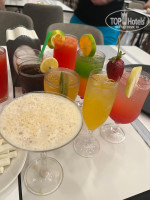 Алкогольные коктейли на любой вкус ...и цвет тоже ....девочки , которые их оформляли , делали действительно быстро , красиво и вкусно ...но не все, конечно вкусно, многое же на любителя...но свое найти можно-попросить по- больше или по- меньше алкоголя , детские безалкогольные коктели тоже оформляли красиво ,выбор очень большой , дети все перепробовали ) Официанты очень добродушные , сказать нечего, -встречали с улыбкой