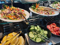 По питанию- брали завтраки и ужины. Понравилось. Все всегда свеженькое. Зелень, салаты, супчики, выпечка, фрукты (арбузы, дыни и ананасы –все спелое и вкусное).Один раз из за экскурсии пропустили ужин, перенесли его на обед в день отъезда без проблем. Обед и ужин практически не отличаются друг от друга. На ужин бывает блюдо от шеф-повара, а на обед плюс сэндвичи и пасту готовили.