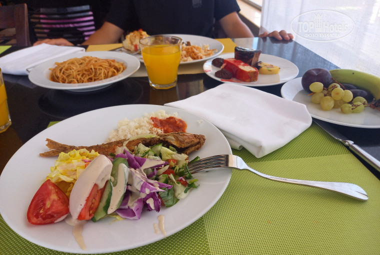 Питание хорошее,всегда было из чего выбрать - говядина,курица, рыба. Каждый день тематический ужин - были и небольшие крабы, креветки в индийский вечер, 1раз попали на перепелку на гриле. Из фруктов -виноград,сливы,финики,дыни,яблоки,апельсины,грейпфруты.