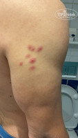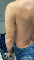 На второй день на теле у мужа стали появляться красные пятна, которые потом ещё чесались и зудели. В дальнейшем появились и у меня. Мы бегали в аптеку закупаться разными кремами против зуда, на пляже он стеснялся снять рубашку (Фото прикладываю). На третий день у ребёнка поднялась температура, ночью я проснулась, чтоб дать лекарство, лежала и ждала пока она спадёт. В темноте я увидела какого-то жука на подушке, машинально стряхнула, потом придавила его, через несколько минут увидела ещё одного, разбудила мужа. Когда он поднял все простыни и заглянул под матрас мы были просто в УЖАСЕ, там был рассадник с клопами. в 2 часа ночи муж взял бумажку с клопом и пошёл на ресепшн, номер поменяли мгновенно и сказали идти без вещей. 2 часа ночи, я в пижаме с ребёнком на руках идём в другой номер, благо я захватила коляску в которой были вещи для моря, так как наши вещи нам вернули только после 18:00 следующего дня (После моих многочисленных просьб и жалоб, обращалась даже письменно к туроператору), оказывается их отвезли в стирку и обработку от клопов (Видимо у них это распространённая ситуация). НИКТО даже не извинился. Предложили поздний выезд из номера в замен на подписание, что никаких претензий у нас к ним нет. Отельному гиду и администратору отеля откровенно наплевать на тебя и на твои проблемы.