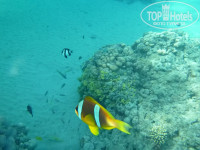 МОРЕ около отеля по египетским меркам не самое богатое на флору и фауну. Но и пустым его не назвать. Большая часть представителей фауны красного моря в наличии. Там тебе и мурена, рыбы клоуны, скат, кальмары, осьминог, барракуда, рыба попугай, иглобрюх, рыба носорог, рыба хирург и ещё куча мелких рыб, чьи названия я не знаю. Кораллы также имеются хоть и не в большом количестве. Учитывая, что море в Январе не самое теплое такого количество в самый раз. Заход в море с пирса или 150 метров идти по колено в воде. В отливы по щиколотку. Такой берег удобен с детьми, в прилив ребенок может один плавать с маской и трубкой, а в отлив можно ходить, смотреть и собирать всякое.