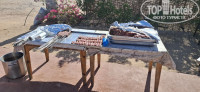 РЕСТОРАНЫ самая сильная сторона отеля. Не каждая пятёрка не то что в Египте, но и в Турции сможет соревноваться с местными поварами. Еда вкусная, разнообразная. Каждый день какая-то специфика, например, рыбный день или день европейской кухни и т.д. Всегда есть мясное, рыбное в нескольких вариантах. Гарниры на любой вкус хочешь макароны или что-то экзотичное египетское все есть. Даже выбор хлеба имеется хочешь багет или лепешки, черный хлеб, хлеб с оливками, булки с кунжутом и.т.д. Фрукты тут тебе и инжир, клубника, финики, дыня, гуава белая и всякие апельсины с яблоками. Десерты торты, пирожное, безе, печенье, козинаки и восточные сладости. Ресторан на пляже также радует блюдами с натуральным мясом (часто в отелях на пляже подают бургеры с соевым мясом). Супом, пастой, пиццей и салатами. Два раза в неделю на пляже проходит основной обед, тогда добавляется куча блюд из основного ресторана плюс мясо на углях. Лично я обедал всегда на пляже. Можно взять тарелку в беседку (главное потом вернуть) и там, с видом на пляж и море, есть. Есть три аля-карт ресторана. Нубийский, итальянский и индийский. В индийский к сожалению, не попали (забыли вообще про аля-карт рестораны посетили в последние два дня). В нубийском давали шашлык и какие-то местные блюда. Не супер, но пойдёт. В итальянском были креветки, томатный суп, мясо, кура и рыба на выбор. Все вкусно. Так же вино чуть лучше, чем в барах.