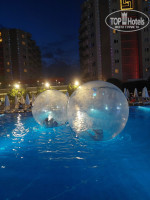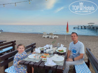 Пляж классный, широкий, глубокий, не плохо убирают, тенты , лежаки, всегда можно найти место. Хороший вход в чистое море. До пляжа 10 минут пешком или на тук-туке, но подвозят лишь до вечера. Лепешки и бар на пляже. Отравлений не было. Готовили вкусно, разные виды рыб, морепродукты в тематические вечера, диетическое питание, много фруктов. Клубники, дынь, арбузов, черешни в начале июня так и не дождались. Не помню на что пожаловался - пригласили на бесплатный ужин на берегу моря, понравилось))) Работа рецепшен на хорошем уровне , решаются любые проблемы гостей очень быстро. Обслуживающий персонал внимательный, отзывчивый. В номере убирались нормально. Артисты, минидиско каждый вечер, анимация не очень активная. Территория не большая, но ухоженная. Рядом аптеки, магазины, рынок. Аквапарк 2 уровня, 4 горки. Понравился салат-бар, роллы. Из тематических вечеров: турецкий и рыбный. Особо ни чем не отличались от обычных дней. Только в рыбный -раки, мидии, кальмары и больше рыбы, а в турецкий добавляются аутентичные блюда, которые непривычные и островатые для нас. Вино неплохое. Больше понравилось розовое. В лобби- баре хороший выбор импортного алкоголя. Из десертов понравились небольшие пирожные с орехами, профитроли с заварным кремом. Из фруктов на удивление не было арбузов. Дыни, яблоки, груши, сливы, нектарины, виноград, бананы, порезанные кольцами апельсины и грейпфруты.