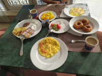 За небольшой бюджет можно рассмотреть разок,подышать,погулять,пошопиться в городе,позагорать на пляже или у бассейна тогда подойдёт (без высоких надежд твёрдых четвёрок).Изначально первую линию бронировали,зная отдалённость второй и то,что соседний отель строится,плитку напольную по территории выламывают,ресепшн второй линии закрыт,столовая там тоже не работает.Только чуть тёплый бассейн для детей и горки,которые закрыты.Предложили вид,отдал двадцатку,хотя можно было и не давать,корпуса на первой линии расположены:один напротив пляжа (он же уходит по кругу с видом на бассейн) солнце встаёт и номера с видом на море/ пляж,теряют солнечный свет до обеда.Поэтому лучше второй этаж если с видом,но они их не раздают за двадцатку,просто поменять на второй этаж из-за шумных арабов соседей,которые 24/7 сидели у моего балкона с бегающими и кричащими детьми,не дали.Успокоили на время арабов.Пляж обычный,мест полно (не сезон),входа в море без обуви нет (осторожно ежи,камни),по пояс метров 50 и резко 20 м глубина,посноркать не получится,по понтону если пройти шаткому,можете искупнутся,огорожено метров 10,вот в этих пределах,на пляже можете всё купить примерно в два раза дешевле вашего туроператора.Тот кто много ездил знает на испуг агента на встрече,не идут,покупают-экономят.На пляж ребятки носят сок за 3-4 д.,предлагают программы путешествий,фото,тату.(который весельчак сок носит,скажите ему султан Ибн султан,он поймёт,будете дружить).Который путёвки продаёт,Оса,передайте привет от Сергея январь-февраль там были,тоже поможет денег переводом рубли на фунты если потребуется (в банках рубли не принимают,в магазинах тоже,в Манго грабительский перевод рубли/доллар +30% бакшиш 126 р,берите доллары с собой.Аниматоры забегают зовут,нам не нужно это.Бар у пляжа с 12:30,у бассейна с 11:30.У пляжа лёгкий перекус и коктейли,джин,ром,текила,бутылки разные вкус практически один,всё местное.Соки не очень,не вкусные,разбавленные.Один раз за две недели на ресепшн попался гуава,через два часа уже 50% воды там.В барах и столовке пиво (не хорошее,судя на то,что в этих пластиковых стаканах 100 гр. половину относят со стола ) у кого браслеты оранжевые(в основном итальянцы),кофе варят зерновой тоже к этому браслету (не пойму почему не купить кофемашину столовую).Нам не то,ни другое не нужно,знали об этом.Контингент русские,итальянцы,турки,арабы.В столовой есть что покушать.Рыба иногда отвратная,а иногда хорошая,говядину бывает подают,курица всегда,то рулетом,то запечённая,для макаронников место где им эти макароны варят,наши не подходят,но дядька тот в чёрном платочке и очках,итальянцам к макаронам подкладывает с отдельной посуды морепродукты. Фрукты нарезанные мелко-мелко или четвертинками апельсины и кусочки дыни.Овощи иногда в нарезке,иногда кусочками нормальными,сладостей выбор огромный,чай только чёрный,кофе растворимый в достатке развесной средний по вкусу.В столовке ребятки бегают убирают,берите шоколадки с собой,как чаевые лучше баксов для них.С усиками мальчик похож на русского как не араб,нам понравился,его и угостили.Заметно,издеваются менеджеры наблюдающие,заставляют кого-то больше,кого-то меньше бегать.Семечек в пакетике купите,бармен у бассейна будет вам уже издалека наливать,то что пьёте. Если подышать,погулять,смочить пятки,может ребёнку море показать за н