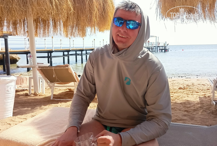Вход в воду с пирса, возможно подойдёт не для всех. Но пирс очень новый и комфортный. Удобный вход в море. Море и риф классные!!!! На пляже новые и комфортные шезлонги нескольких видов. Играли с аниматорами в боччу и дартс, ходили на зумбу!!! Из минусов нет волейбольной площадки на пляже, этого не хватает.