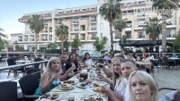Отдыхали в начале мая 2024 г большой компанией {25человек } Рейс задержали на 5часов, приехали ночью и номера были не готовы …. Пришлось всем возвращаться за постельным бельем ,для четвертого спального места , фото прилагаю . Номер уставший и очень маленький ((( первое впечатление было испорчено ,но всё остальное понравилось хороший отель, для бюджетной пятёрки, разнообразное питание, много овощей и фруктов, мясо , курица , рыба .В барах был импортный алкоголь -виски, вино, текила, водка, пиво, ром . Делали вкусные коктейли , работали до последнего посетителя .Особенно порадовало хорошее расположение, 3 минуты от отеля- и ты уже гуляешь по Кемеру,с многочисленными сувенирными лавками и кафешками . Пляж в 5 минутах. На пляже работает бар.там-же есть обеденное меню 😍очень удобно , дети бегали за пиццай ,нагенсами , картошкой и бургерами 🍔🍟🍕. Заход в воду не очень удобен из-за галечного дна. Без купальной обуви выйти крайне сложно. В отеле есть аквапарк. Правда требует ремонта, некоторые горки не работали , на многих стыки выпирают, потрескавшееся покрытие. Поэтому берегите купальники и попы со спинами. Очень понравилось, что рядом с аквапарком детская комната и игровая площадка. У бассейна с «волком» в определенные часы (вроде с 2-ух до 4х) раздают мороженое. В целом в отеле есть все для комфортного проживания. Ещё хочу отметить, что тут очень крутые аниматоры, именно благодаря им ,наш отдых был на 100000% интересней ! Каждый день они проводят супер классные развлекательные программы, и на пляже и возле бассейна🤩 Вечером разные шоу, живая музыка, дискотека, игры, есть и для детей и для взрослых!Дети остались в полном восторге от аниматоров 💞 Лично нашим семьям очень понравился отель, хотели бы поблагодарить руководство отеля,за хороший ,веселый отдых , и так же всему персоналу и анимации 💞