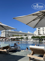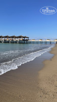 Пляж около километра!! Лежаки очень широкие и стильные, далеко друг от друга и это очень комфортно, ведь не приходиться слушать истории соседа и курить вместе с ними! ВСЕГДА есть свободные лежаки (в любое время). В отелях, находящихся в центре Белека пряжи узкие, места занимать нужно рано утром.