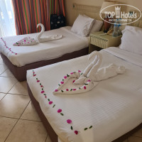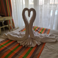 Отдыхали с дочкой с 19 по 30 января 2025 года. Приехали около 11, сразу надели браслеты и попросили немного подождать номер. Спросили где бы мы хотели жить, в главном здании или в двухэтажных домах (у нас было куплено в главном здании), предложили посмотреть и выбрать и мы выбрали двухэтажном доме на втором этаже, номер 739. Вид был потрясающий! Про номер могу сказать что усталый, мебель надо бы поменять, но убирали каждый день и очень хорошо, каждый день были потрясающие, разные штуки из полотенец и цветов, а на день рождение вообще была красота! :) Территория очень большая и зеленая. Вид красивый везде, и где домики (они получаются на горе) и где главное здание.