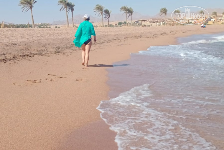 Отдыхали тут в апреле 2024го. Погода была очень комфортной (28-30 градусов днем). Море достаточно теплое. Несколько дней было ветрено, при этом волн практически не было. Выбирали отель по удобству пляжа и входа в море для ребенка. Не ошиблись. Половина пляжной линии -риф, ходить по нему не приветствуется. Вторая половина-песок, с очень удобным заходом без понтонов. И продолжается дальше за территорию отеля. Сам отель стоит обособленно. С обоих сторон длинная береговая линия. Лежаков на пляже всегда было достаточно, на случай ветра есть параваны (полукруглые стенки от ветра). Риф живой, можно поплавать с маской.