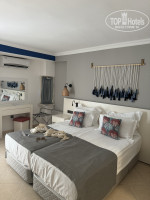 Брали путевку, когда отзывов после реновации было мало, но мы не ошиблись. Были на анталийском побережье везде, в бодруме первый раз - и это самый лучший отдых! Да, отель может быть не тянет на твердые 5*, но разве кто то еще смотрит на звезды?! Нам все очень-очень понравилось. Главная фишка этого отеля-виды! Они просто шикарные! Вид на бухту бодрума прекрасен в любое время. Так же у отеля своя небольшая бухта, которую он разделяет с отелем напротив. Были очень рады, что взяли отель именно со своей бухтой, потому что при выборе тура думали расположиться в самом Бодруме. Но там просто ужасно! Вода грязная, куча лодок, с них масло в воде, грязь, мусор, бродячие собаки, кошки прям на пляже. А в нашей бухточке было тихо, спокойно и чисто. Никаких чужих людей из других отелей, все только свои. Расположение удобное, отель на горе находится. До набережной бодрума 15 минут с горки- пока идешь шикарные виды (местные специально приезжают сюда встречать закат). Обратно в отель на такси 5-8$. Радует, что не было детей. Потому что с ними тут тяжело, пенсионерам тоже будет тяжело. Много лестниц. Есть конечно фуникулер, но пока его дождешься…проще по лестнице подняться. Пляж- это деревянный пирс с лестницей сразу в море. Мне очень понравилась такая концепция. Никакого песка на ногах, никаких волн сшибающих тебя при заходе, никаких камней. Сразу спустился и на глубине. Вода в Эгейском море отличается- она тут темнее и по температуре прохладнее чем в средиземном. Всегда были свободные лежаки, в какое время не придешь- место всегда есть. Лежаки с зонтиками хорошие, все новое. Полотенца пляжные можно получить прям на пляже, меняй хоть по 10 раз в день. Так же на пляже бар. Коктейли все очень вкусные, конечно в разных барах по разному делают, самые лучшие коктейли в баре у лобби. Удивило, что наливают оригинальный бейлис, не местного производства как везде, а оригинал. А мы большие любители этого напитка.