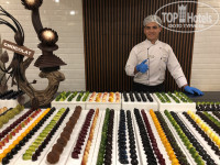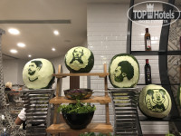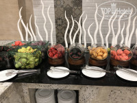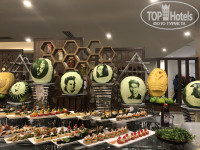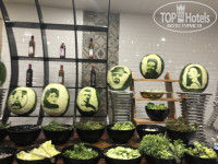 Восхитило разнообразие блюд- впервые встретила в Египте отварную свеклу, салаты с ней, селедку, сырокопченое мясо. Безумно понравился лосось на пару. Никогда не встречала так много фруктов в июне (4ая поездка в данном месяце)- красный и желтый арбуз, инжир, дыня 2х видов, слива, бананы, апельсины, яблоки 2х видов, финики, виноград 2х видов. Чудесные десерты и вкуснейшее мясо. Все безумно вкусно и разнообразно! Очень порадовало наличие томатного сока в основном ресторане- спасибо! Официанты очень вежливые, всегда готовы помочь что-то принести- жаль, что менялись каждые 7 дней)