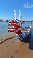 Отдыхающие: большинство - русскоязычные. Лежаки занимают часов с 7 (особенно на пирсе), приходят, разумеется, сильно потом. Если приходят.