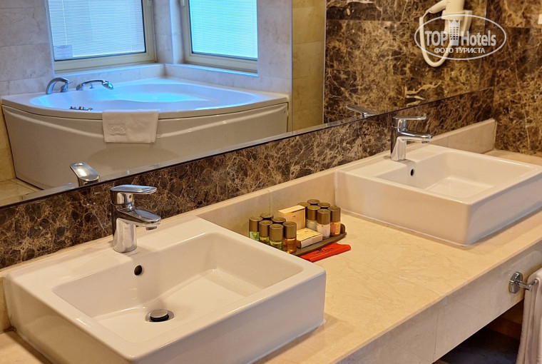 Номера в основном здании маловаты: 2 кровати + раскладушка + чемоданы на полу (чтобы вещи разобрать) - и уже места нет. Да, приехали на море, но чуууть-чуть территории хочется. И стандарты в "Камелии" этим же грешат (по словам очевидцев). Фемили - прям дороХо/ боХато: 2 комнаты, большая прихожая и большая ванна с джакузи (дети по разу поплескались и успокоились). Убирались хорошо, спрашивали, когда нам удобно (возвращаясь к одам персоналу).