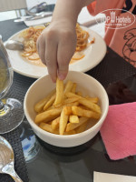 7. Питание было все включено - ресторан небольшой, но все свежее и вкусное - выбор салатов, фруктов, сладкого и напитков. Детям если спросить приготовят фри. В перерывах мы пили кофе, коктейли в баре у бассейна или Лаве - перекусов не было, мороженное на ужин давали. Во все включено небольшой, но достойный перечень: Пиво Бекс, Левенбраун. Напитки б/а чай, кофе, кола, фанта, спрайт, содовая, вода, сок манго, апельсин, яблочный - воду в бутылочках брали по необходимости. Воду большую с ужин, завтрак, обед - забирали в номер чай делали. Вина - белое шардане, красное мерло Брассери и Компатуары. Крепкое: Ром, джин, Виски, Текила. Коктейли: Скрюдрайвер, Куба Либре, Кока Блю, Пассион Физз, Уиски Мэш, Спритцер.