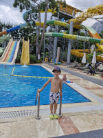 Территория на самом деле совсем не большая, были в отелях с большей и более интересной территорией. Но она очень ухоженная, зелёная, компактная. Есть несколько бассейнов, аквапарк ( не 2-3 горочки, как бывает ).