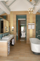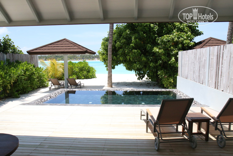Grand Beach Suite with Pool, который я бронировал, отличается от Grand Beach Villa with Pool наличием, по сути, дополнительной комнаты, в которой можно и нужно селить детей, и которая даже закрывается раздвижной дверью (правда, над дверью открытый проем до потолка, шумоизоляции здесь нет – чисто, чтобы ночью не носились). Но, все равно, планировка гениальна: при желании можно хоть с тремя детьми такое размещение брать, всем комфортно, у всех свои спальные места, что нечасто встречается на Мальдивах в номерах подобного класса. В общем, сам Grand Beach Suite with Pool – огонь! Особенно учитывая, что он новый. Изучайте на фото.