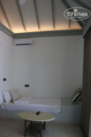 Сами виллы, повторюсь, отличные: современные, просторные, новые. Не буду долго и нудно перечислять вплоть до числа пачек туалетной бумаги, но всё необходимое здесь есть, включая сейф, гладильную доску с утюгом, зубные щетки с пастами и халаты. Это уже на уровне "пятерки". Бассейн немного мелковат, на мой вкус, всего 1 м в глубину. Мне и детям больше нравится "стандартная семейная" глубина – метр двадцать. Но кому-то, может, наоборот, это будет плюсом. Европейских розеток всего две, у большой кровати. В них же есть дополнительные usb-порты для зарядки. Для всех остальных розеток, во всех помещениях, нужны переходники. В целом, нам хватало этих двух евро-розеток, но с трудом (использовали usb-порты и мощные блоки питания на два устройства сразу). Русских каналов в телевизорах нет. На канале 43 в реальном времени показывают движение местных рейсовых автобусов, это удобно. Пива в мини баре всего две банки (в Siyam World ставят по четыре), закусок тоже мало. Зато вина по три бутылки 0,75 в день. Однако! Когда заканчивалось пиво, а спать было рано, в голову лезли самые неприятные мысли про алкоголизм и про то, что способствует его развитию… Инет 9/8 Мбит в номере, 4/9 в ресторане и 2,5/8 в баре. В СПА честные 10/10. В общем, где много народу, быстрого инета на всех уже не хватает - островитяне. Инет требует авторизацию по номеру виллы и по фамилии, но только один раз. Нет воды перед входом в номер – плохо, нельзя помыть ноги. Кран с водой есть, но ближе к бассейну. То есть, если ты ходишь босиком, нельзя помыть ноги и войти в номер через главную дверь, снова не пройдя по песку. Удобно было бы поставить хотя бы чан с водой и с ковшиком, "как везде".