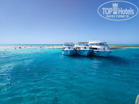Справа и слева высокие стены, между ними порядка 9 трёхэтажных перпендикулярно расположенных корпусов, по 10 номеров на этаж. Стоят лесенкой прям до моря. Я прикинул, метров 300-350 от корпуса с ресепшен до моря. Постоянно курсирует бусик, водитель очень приветливый, всегда улыбается, рукой машет. Мы кончено ходили пешком, вес сгоняем. :) Отель не новый, поэтому мебель местами потёрта, но общее впечатление вполне себе на пятёрку, может с минусом. Номер просторный, нас всё устроило. Бассейнов 5, из два больших и тёплых (даже горячих!). Просто кайф при весенней погоде. Пляж также лесенкой спускается к морю, вроде 4 уровня. На каждом лежаки, зонтики. Плавать с пирса, пирс метров 40, сразу глубина порядка метров 8-ми, кораллы, чуть дальше в море ненамного глубже, но дно видно отлично. В общем, понырять и посмотреть рыбок очень даже можно.