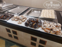 ПИТАНИЕ: оно с 7 и до 24 часа, качественное , вкусное, обильное. Фрукты:яблоки, мандарины, апельсины, бананы, гуава, дыня, финики, клубника. Бесподобные пирожные, выпечка круасанов, пончиков, венские вафли, блинчики с шоколадом,пицца из печи, египетские чебуреки, шаурма. Мясо курица, говядина, во всех возможных способах приготовления. Мы в основном предпочитали рыбку, в кляре филешка просто ум отъешь, жареная, гриль. Креветки кушали, но по нам соус лишний. Свежевыжатые соки апельсина, гуавы, гранат. Много йогуртов, большой выбор сыров в т.ч и дор блю. Халва, мед, джемы, мороженое с 9 до 17 в баре справа от детского клуба. Всё не перечислить, просто надо здесь раз побывать, это рай для живота. Напитки местные, но вполне можно употреблять. Муж пробовал виски, ром, водка, текила и пиво в стекле и в разлив. Берите с собой вяленую рыбку, на море с пивком мужу очень прихотелось.