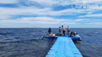 На этом вроде весь негатив закончился, но осадок остался. В отеле две линии, на каждой по большому бассейну с разной глубиной в каждом. На второй линии в бассейне есть несколько водных горок (но в наше пребывание они не работали). На территории отеля несколько баров (у бассейнов, на пляже и на ресепшене). В концепции отеля пиво и вино (для русских, украинцев и поляков) не входит в систему все включено. Персонал к итальянцам и арабам относится лучше, чем к другим. Ресторан находится на 3 этаже (для тех, кому тяжело подниматься по ступенькам, будет очень проблематично, так как других вариантов попасть в ресторан нет). Блюда в принципе разнообразные, но на каждый завтрак, обед и ужин меню практически одинаковое. Голодными не уйдете, еда (для Египта) хорошая, но к концу отдыха так надоедает, что хочется уже чего-нибудь своего, домашнего. На пляже и у бассейнов лежаков всем хватало. Но мы были не в сезон и отель был заполнен меньше, чем на половину. Скорее всего при полном заселении отеля лежаков на пляже хватать не будет. В море вход с берега официально не разрешен, но никто не гоняет если далеко не заходить. Обязательно входите в воду только в обуви, т.к. рядом с берегом часто бывает много морских ежей (во время отлива их хорошо видно). Есть пластиковый понтон, на котором при волнении моря хорошо подбрасывает. Коралловый риф радует глаз. Но по географическому расположению лучше снорклингом заниматься в первой половине дня, т.к. потом солнце светит с берега прямо в лицо. Анимация (расписание висит на втором этаже на лестнице, как идти в ресторан) в течение дня проходит на пляже и у бассейна, вечером детская дискотека, в 21:00 вечернее шоу (с понедельника по воскресенье разное, но потом повторяется все то же самое). Аниматоры разговаривают только на английском и итальянском, но многие из персонала хорошо говорят по-русски. На ресепшене есть платный интернет (2$ в сутки, 8$ в неделю), но когда сразу много людей входят в сеть, происходит просадка скорости. Лучше всего покупать симку с интернетом сразу в аэропорту по прилету, это будет удобнее и выгоднее. В главном здании есть магазины с симками (но намного дороже, чем в аэропорту), сувенирами, одеждой и т.п. Но там все дорого. Лучше выйти в город (через вторую линию отеля) и там полно разных магазинов. Там же находится магазин "Манго", где цены раза в 2 ниже, чем в магазинах, в которые возят от отельного гида на обзорной экскурсии. Подведя итог, в целом инфраструктура отеля, расположение хорошее, но как встречают и относятся к туристам ставит большой крест на этом отеле. Я бы второй раз в этот отель не приехал бы.