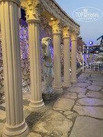 Красивая территория днем и ночью, все цветет, много красивоцветущих кустарников. Вечером холодные бассейны все подсвечены, мило.