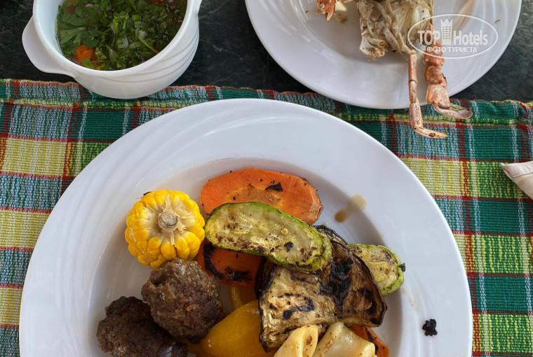 Фрукты: яблоки, сливы, дыня, клубника, гранат, финики, бананы, гуава, хурма, мандарины, апельсины, виноград. Мясо каждый день говядина, крица, иногда индейка. На гриле, тушеное, жареное. Рыба каждый день вкусная, морепродукты разные: кальмары, креветки, крабы, осьминоги, мидии. Отдельно детская зона с столиками, детского питания нет. Есть блендер, детские стульчики. Десерты разные вкусные, в том числе и местные. Алкоголь только местный, вино кислое, коктейли готовят невкусные. Очень понравился индийский а-ля-карт, вся еда была вкусной и ее было много.