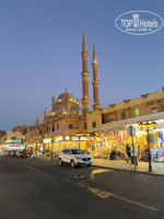 За территорией отеля несколько магазинов, банкоматы, где можно обменять доллары на местные египетские деньги. Ездили на такси через приложение inDrive в старый город к мечети Аль-Сахаба, и на площадь Сохо. Мечеть понравилась, туда лучше ехать к закату, недалеко есть кафе с видом на мечеть и магазины. Площадь Сохо современная, но с магазинами подороже. Ездили в магазин Манго, купить сладостей домой. Нашли в запрещённой соц.сети аккаунт и заказали бесплатный трансфер от магазина, в назначенное время приехал трансфер, с гидом, затем собирали туристов с отелей, везли до Хадабы. Вообще ехать для нас было долго и нудно с ребёнком, обратно уехали на такси. Магазин как магазин, ничего особого. Купили немного фиников, такие же в старом городе, тунец консервированный отличный, пастилу из манго не понравилась на вкус отдает рыбой. Сувениры не покупали.