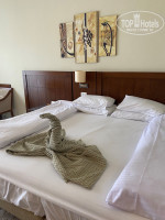 Номер у нас был забронирован с видом на сад. Спасибо отелю, дали номер с видом на бассейн и видом на море и горы, вид из номера шикарный. Утром, когда проснулись были в восторге! Сам номер довольно просторный, чистый и ухоженный. Каких-либо проблем не было. Отлично работал интернет. Ежедневно вода пополнялась. Халаты и тапочки, минибар софт напитки бесплатно 1 раз: газировка, сок, шоколадки. Чай и кофе тоже ежедневно дополняли. Фен в номере, увеличительное зеркало, большое зеркало, зеркало со столиком, телевизор с разными каналами, два кресла и столик, балкон вместительный с пепельницей.