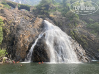 Экскурсию выбрали на водопад Дудхсагар, переводится как «Молочный Океан» и он считается самым красивым в Индии. Название экскурсии – «Первая встреча с Гоа». В экскурсию входило: поездка к самому водопаду, посещение плантаций специй, индуистского храма и руин католического храма. Водопад действительно очень красивый и его стоит увидеть. К самому водопаду везут с места сбора на джипах. Дорога пролегает по джунглям и занимает в одну сторону около 40 минут (по словам гидов «около 15 минут»). По возможности садитесь в середину салона и если едете в одиночку, то на сиденье, рядом с водителем – меньше будет трясти по дороге. Джипы привозят ко второй точке сбора, от нее придется идти пешком. В некоторых местах тропинка проходит по ручьям и скольким камням, так что оденьте удобную обувь. Будьте внимательны и осторожны, когда будете идти к водопаду и когда придете на место. Вас будут ожидать обезьянки. Они не большие, но их достаточно много, и они могут стать агрессивными, если что – то им не понравится. Спрячьте заранее, все вещи, которые могут привлечь их внимание в сумки или рюкзаки. Они очень наглые, выхватывают все, что захотят. И несмотря на маленькие размеры, зубы у них как у большой собаки, которые они демонстрируют с предупреждающим шипением.