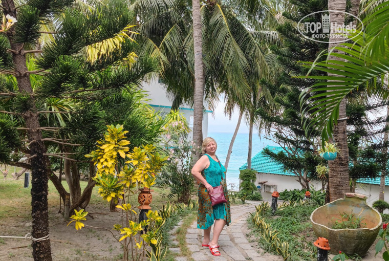 Красивая ухоженная территория отеля Paradise Resort Doc Let с пальмами, олеандрами, мандариновыми деревцами и небольшим подсобным хозяйством, есть где погулять.