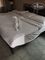 10. Номера: довольно просторные, 2 прикроватные тумбочки, столик, два стула, большая тумба с барным холодильником и зеркалом, шкаф, сейф, плоский телек с 3 русскими каналами, кровать двухспалка 2х2м. Одиночные кровати тоже широкие. Матрасы, как по мне, мягковаты, а подушки жестковаты и слишком большие. Кондиционеры где на потолке, где на полу. Открывание номера ключом, причем дается один и если дверь захлопнется, а ключ в номере, то вэлком на ресепшн. Есть телефон, набираем "0" для румсервиса. По заселению сразу проверяйте что все работает и просите немедленно исправить что не устраивает. Верхнего света нет - только светильники 3 шт. Есть бойлер. Фена, утюга, чайника, халатов, тапочек нет. Из мыльно-рыльных только гель в дозаторе. Туалетную бумагу приносят в достатке) По 1,5 литра воды каждый день. Убираются прилично, делают фигурки даже без чаевых. Душевая сама маленькая с поддоном, занавеску оставляете в поддоне и ничего не течет, хоть и тесновато. В некоторых номерах ванна 1,5м. Балконы где-то выход из номера, где-то из общей залы. Берите веревки для сушки.