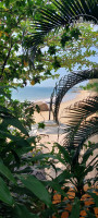 До пляжа те же три минуты, есть бар. Лежаков всем хватало, лежали в основном под зонтами под деревьями. Море шикарное и горячее в марте, маяк разбивает волны. Есть пара качелей. Заход в море плавный, мелкий желтый песок. Живности в море только планктон который периодически кусает. По пляжу ходили в кафе которое на горе, через кафе и бунгало по лестнице поднимаетесь прямо в него где можно сделать прекрасные фото, заход в него только босиком или в носках. Мы заказали апельсиновый сок и устроили фотосессию в 16 часов там практически никого не было.