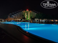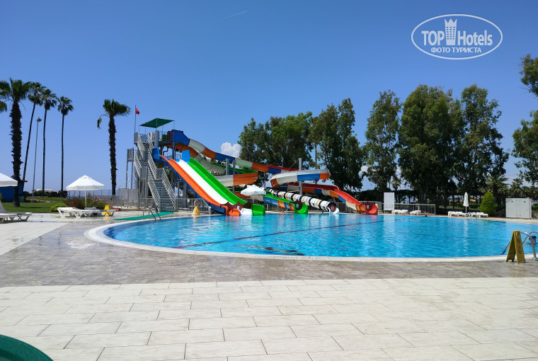 Отдыхали с 02 по 09 июня 2023. Отель расположен недалеко от аэропорта, поэтому ехать недалеко. Прилетели с утра, нас отправили на завтрак. Потом переоделись и пошли изучать территорию. Примерно в 14.00 заселили. Номер был в основном корпусе, 1407, с видом на море. Хороший чистый номер, мебель аккуратная, номер не большой, балкон маленький. Развесить труселя и коралки – достаточно. Все что нужно есть. Для информации: все номера с видом на море выходят на вечернюю дискотеку, где до 2-х часов ночи громко играет музыка. Учитывайте этот момент при заказе номера, если вы хотите спокойно спать))). Нашей компании это не мешало))). В номере кондиционер центральный, работает как-то по расписанию, тарахтит громко, результата мало. Особо не охлаждал. Открывали дверь на балконе. С открытым балконом спать комфортно. Администрации что-то надо с этим делать. Территория отеля большая, ухоженная, зеленная: красивые цветы, пальмы. Есть где прогуляться. Для спорта тоже есть много всего: большие теннисные корты, футбольное поле, есть баскетбольное кольцо и теннисные столы. Это все на улице. В здании есть тренажерка, если кому интересно. Много ящериц, есть черепахи и ежики. Очень широкая пляжная линия, лежаков с запасом. Всегда хватало. Прекрасный пляж с пологим входом в море, небольшой пирс. Чистое море и песок. Нет ни водорослей, ни булыжников, ни медуз. Лежаков на пирсе нет. Дня три пирс был закрыт, потом его доделали. И тогда пошли прыжки с пирса, красота. Еда очень приличная, огромный выбор блюд, много баров (на пляже, на территории, у бассейна). В определённые часы бесплатное мороженое (4 вида). Из фруктов были бананы, апельсины, яблоки, абрикосы, арбуз, виноград, один день была клубника (два раза). Мясо, рыба в наличии. Голодным точно не будете. Ресторан очень большой, очередей на обеде нет. Персонал вежливый, все улыбаются. Около пляжа есть гриль-бар, кто не хочет идти в основной ресторан, может там поесть, с 12 до 16, там в основном картофель фри, гриль крылышки, шашлычки, пицца, суп, есть немного десертов, овощей и фруктов, бар с напитками. Анимация была интересная и разнообразная. Аквааэробика утром и после обеда в бассейне, тренировка на батутах в бассейне, дартс, йога, стрельба из лука и пневматической винтовки. Команда молодых ребят поднимала настроение каждый день. Хочу выделить Андрея, Фарука очень веселые и позитивные ребята. Очень легко находят контакт с посетителями, общаются и поддерживают веселую и непринужденную обстановку. Вечерами шоу-выступления, которые проходят в отдельном амфитеатре. После 23,00 развлечения для взрослых, танцы, караоке. Алкоголь только турецкий. Нормальный. Выбор напитков в баре хороший: шампанское, мартини, виски, ром, водка, пиво и т.д. Неплохие коктейли. Доброжелательные бармены и ни каких очередей ни в барах, ни в ресторане. Wi-Fi только в лобби. Интернет работает только там, в номерах не ловит. Позвонить и отправить сообщение хватит. В отзывах многие пишут, что это минус. Я не считаю это минусом. Отдыхать надо, а не в интернете сидеть))). Если для кого-то это критично, то покупайте отдельно интернет, чтобы не быть привязанным к лобби. Несколько бассейнов (детский, взрослый, аквапарк с горками) с комфортной глубиной. Все чистое. И самое главное в отдыхе — это компания и позитивное настроение. А если Вы приезжаете уже с негативом и пытается сразу же найти не