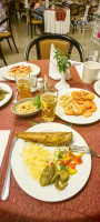 Вечером работает бар на терассе , можно взять напитки, коктейли, спрайт и тд. Закусок нет. Работает один бар. Как то скучновато. Просто столики и бар. Но посидеть выпить коктейль можно с видом на отель.