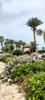 Летели мы авиакомпанией Алмасрия. Все отлично. Вылет вовремя. На борту дают воду, сок, чай, кофе и бутерброд. Прилетели в 5 утра. В отеле были к 7 примерно. Нас встретили приветственным коктейлем. Проводили на завтрак ранний. Но мы не были голодные так рано. Прогулялись. Номер дали в 10.00. Мы жили в 327. Чуть выше ресепшн и ресторана основного. Нам было недалеко. Прогуляться приятно. По территории курсируют автокары, могут довезти до пляжа. Идти 3 мин, но пожилым людям может быть тяжеловато по лестницам.